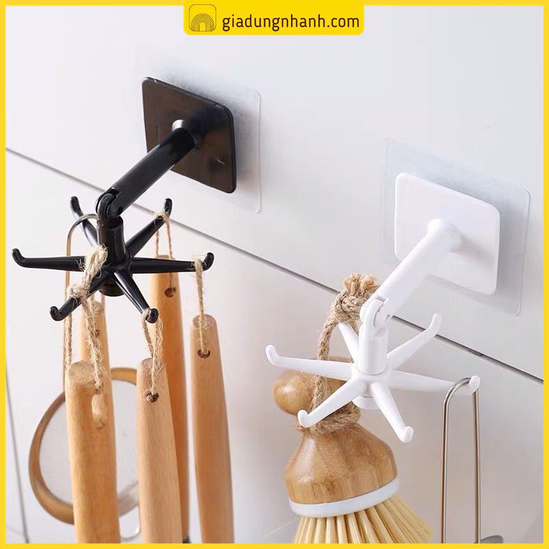 [VIP] Giá Treo Đồ Nhà Bếp Dán Tường 6 Chấu Xoay 360 Độ Treo Đồ Đa Năng