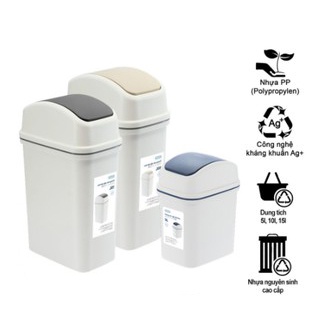 [VIP] Thùng Rác Nắp Lật HIRO 10L (Loại Kèm Ruột), Thùng Rác Chính Hãng INOCHI