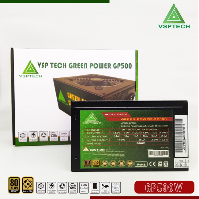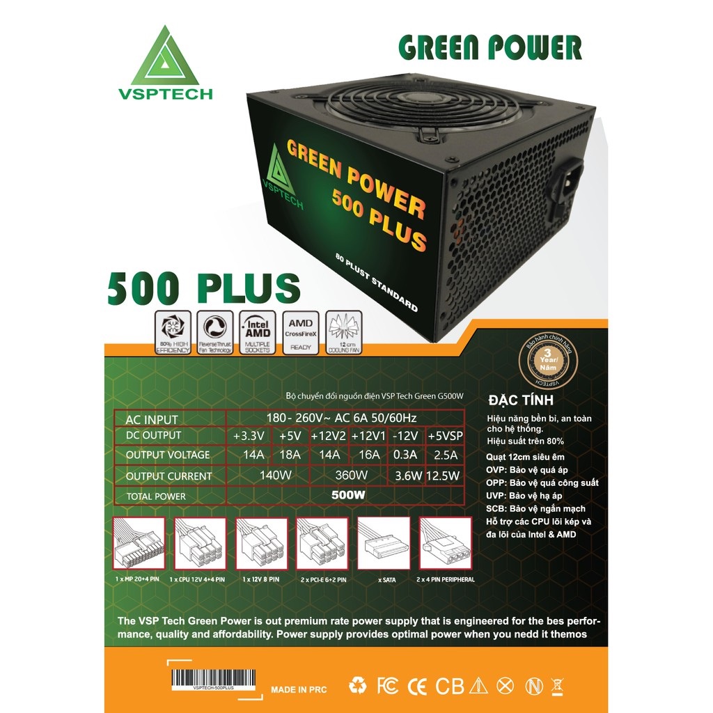 Thông Số Kỹ Thuật: Nguồn 500W Vision Green Plus
