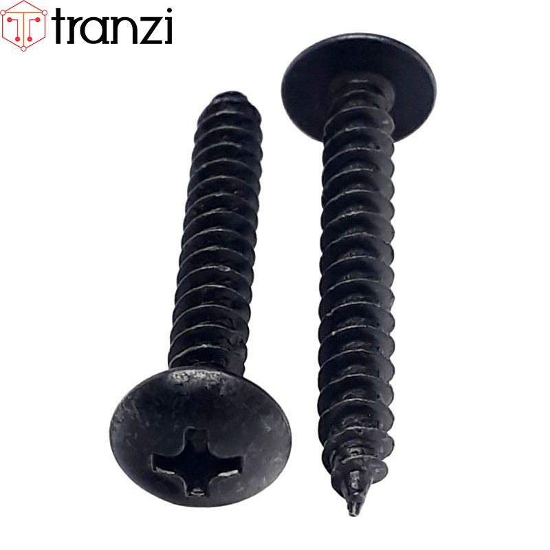 Vít bake đầu dù đuôi nhọn ren thô mạ đen M4x30 - túi 50 cái