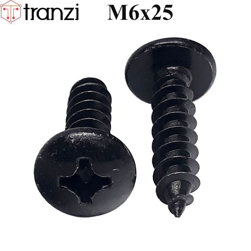 Vít bake đầu dù đuôi nhọn ren thô mạ đen M6x25 - túi 10 cái