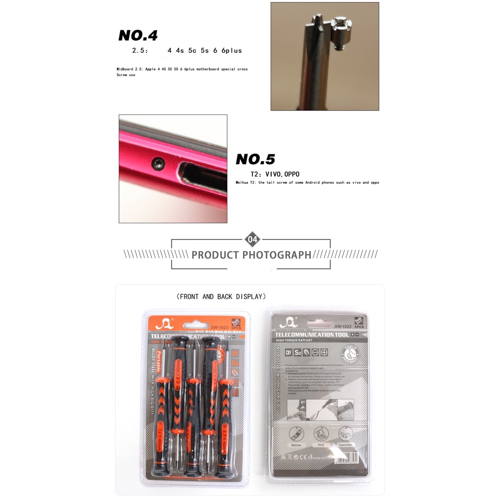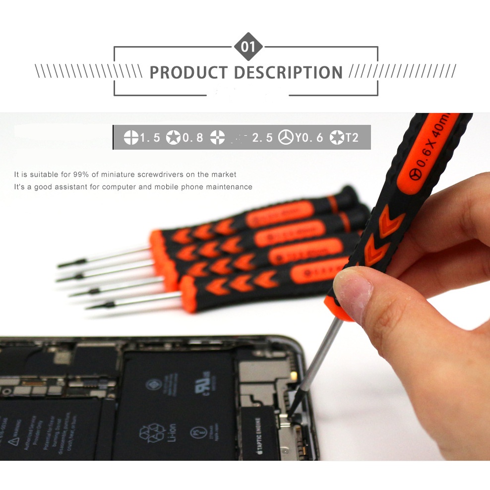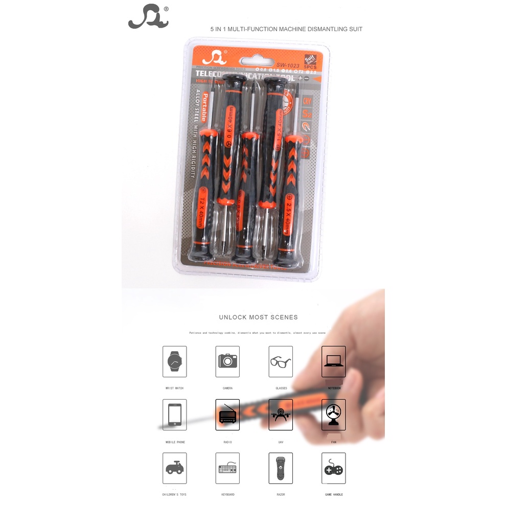 Bộ vít 5in1 mở điện thoại iPhone, iPad, đồng hồ.. và các máy điện thoai Android như samsung, vivo, oppo...Bộ sản phẩm gồm 5 cây vít :