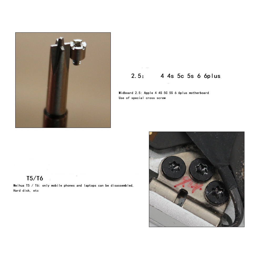 - Vít M 2,5 mở ốc đặc biệt tháo main bo iPhone ra khỏi sườn của máy