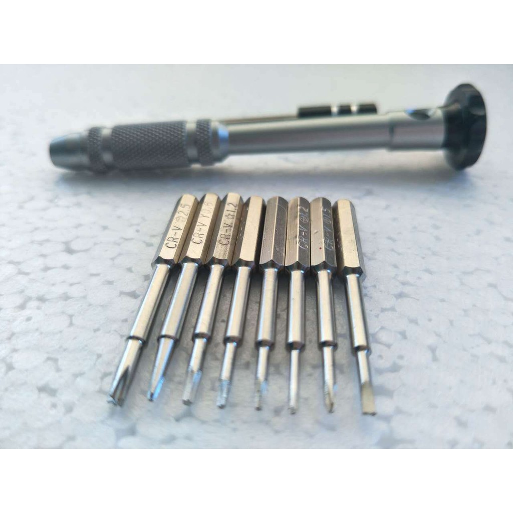 Ưu điểm của bộ vít đa năng 8143: nhỏ, gọn, bộ vít bao gồm 8 đầu chuyên dụng mở ốc, vít laptop, điện thoại,v.v..