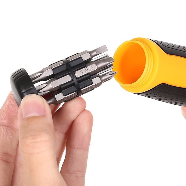 - Chắc chắn, bền bỉ nhờ chất liệu từ kim loại sáng bóng.- Bộ mũi vít đi kèm dạng dấu cộng, trừ, hình bông gồm 12 kích cỡ: 5mm, 6mm, 7mm, PH1, PH2, PH3; TX: T10, T15, T20; HEX: H4, H5, H6.