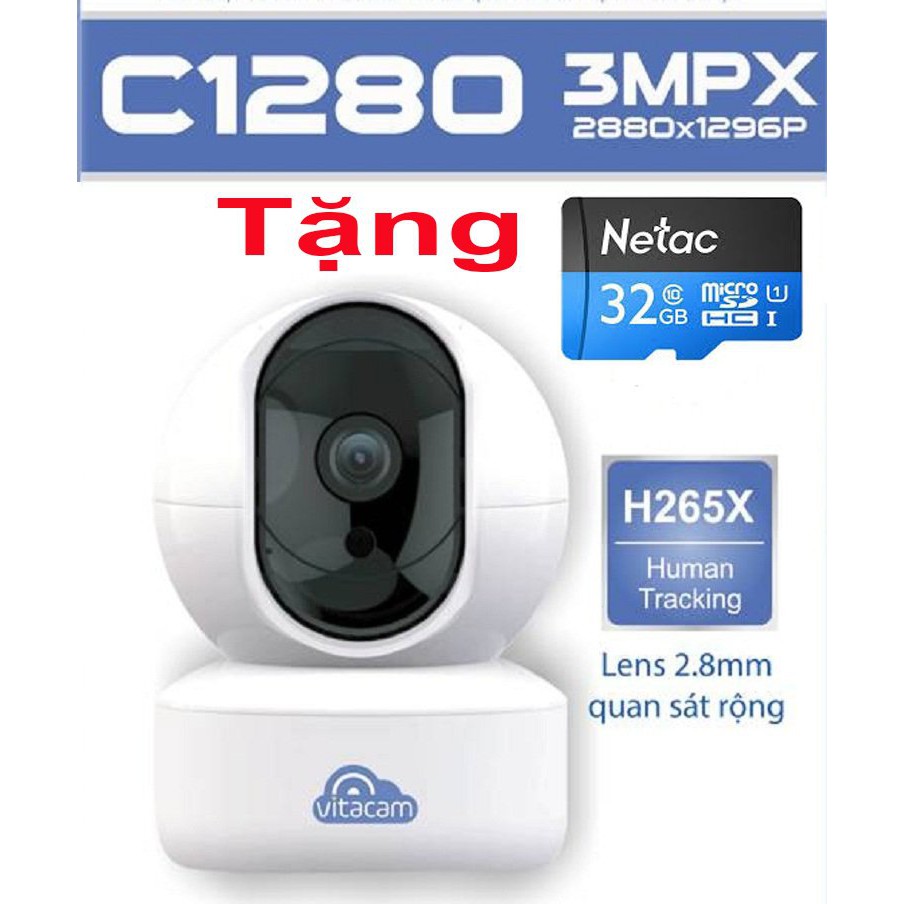 VITACAM C1280 3MPX TẶNG THẺ NHỚ CHUẨN ULTRA HD- LENS 2.8MM GÓC QUAN SÁT SIÊU RỘNG. CÔNG NGHỆ AI, XOAY 360 ĐỘ. - c1280