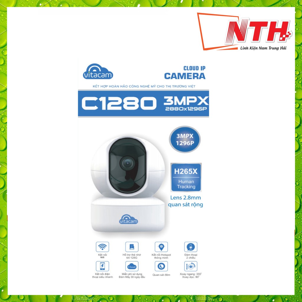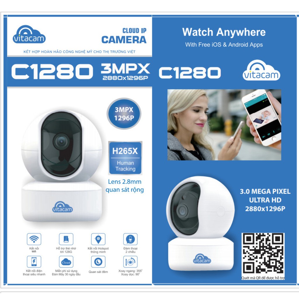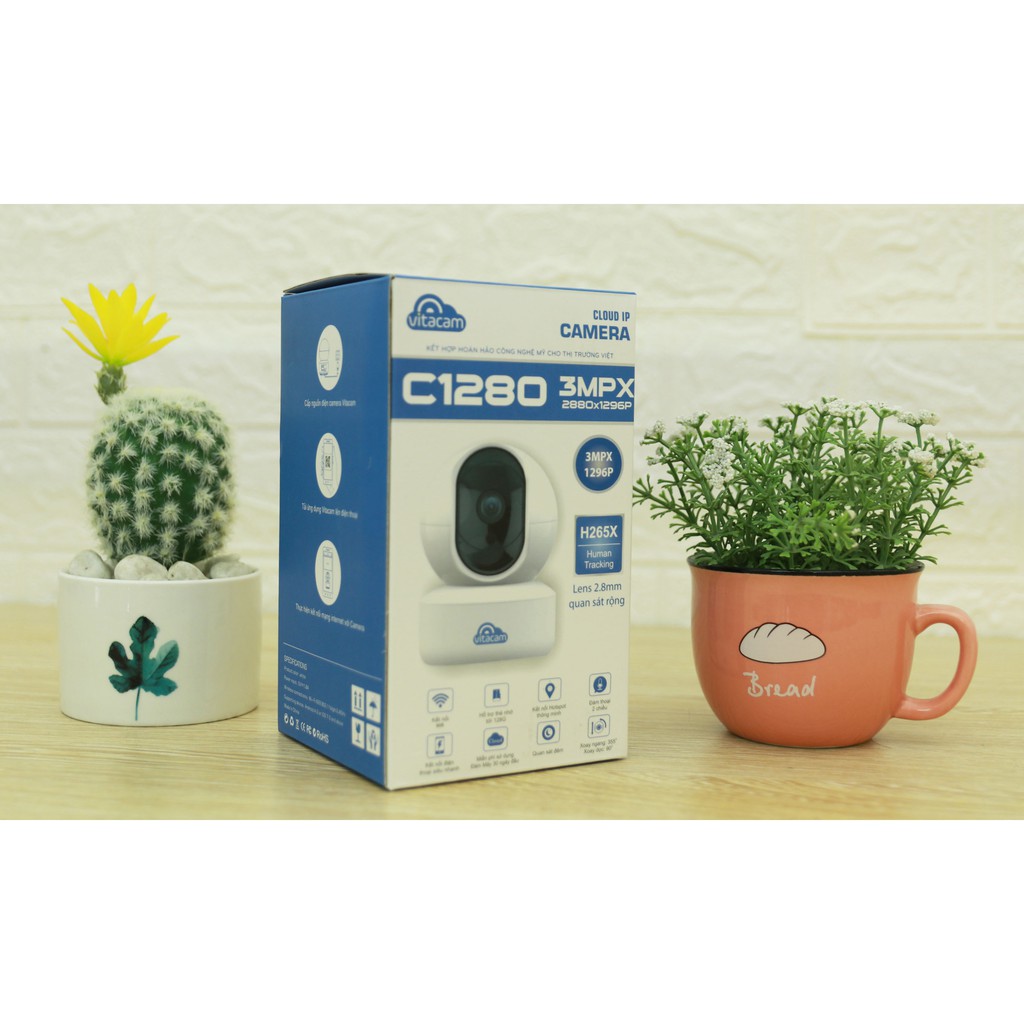 Cameras & Flycam > Camera giám sát > Camera giám sát kết nối internet || VITACAM C1280 - ĐỘ PHÂN GIẢI 3MPX CHUẨN ULTRA HD- LENS 2.8MM GÓC QUAN SÁT SIÊU RỘNG. CÔNG NGHỆ AI, XOAY 360 ĐỘ.Còn hàng