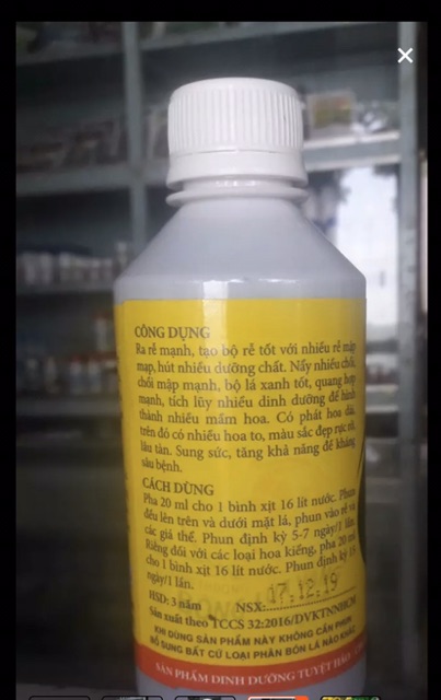 Pha 20ml vào bình 18 lít phun xịt cho hoa lan và các loại hoa kiểng. Phun định kỳ 15 ngày 1 lần.
