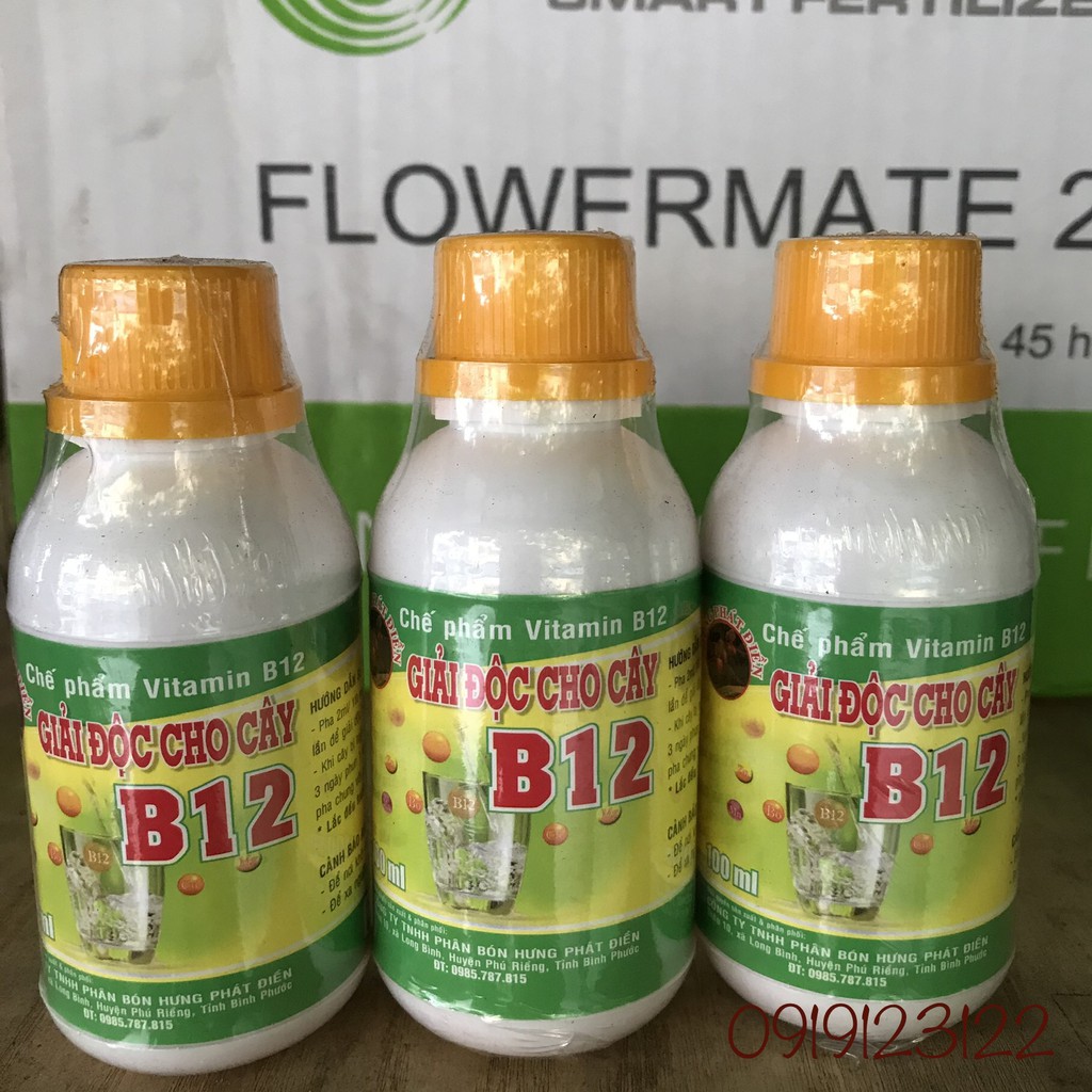 Khi cây bị tưới phân đủ loại, quá liều, gây ngộ độc thì ta tưới cho cây B12 sẽ làm cho cây giải độc, phát triển lại bình thường.