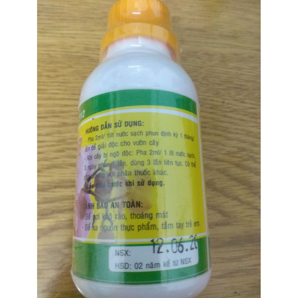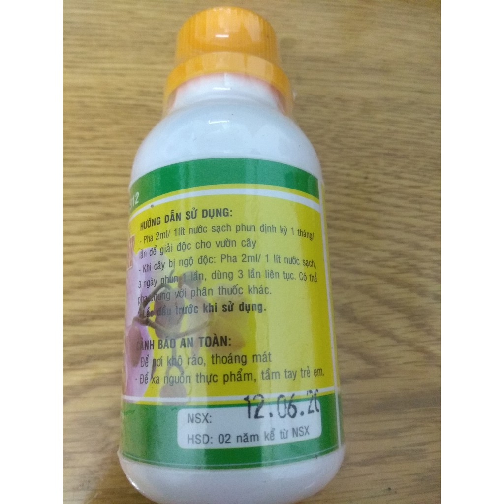 Pha 2ml/ 1 lít nước, phun định kỳ 1 tháng lần để giải độc cho vườn cây