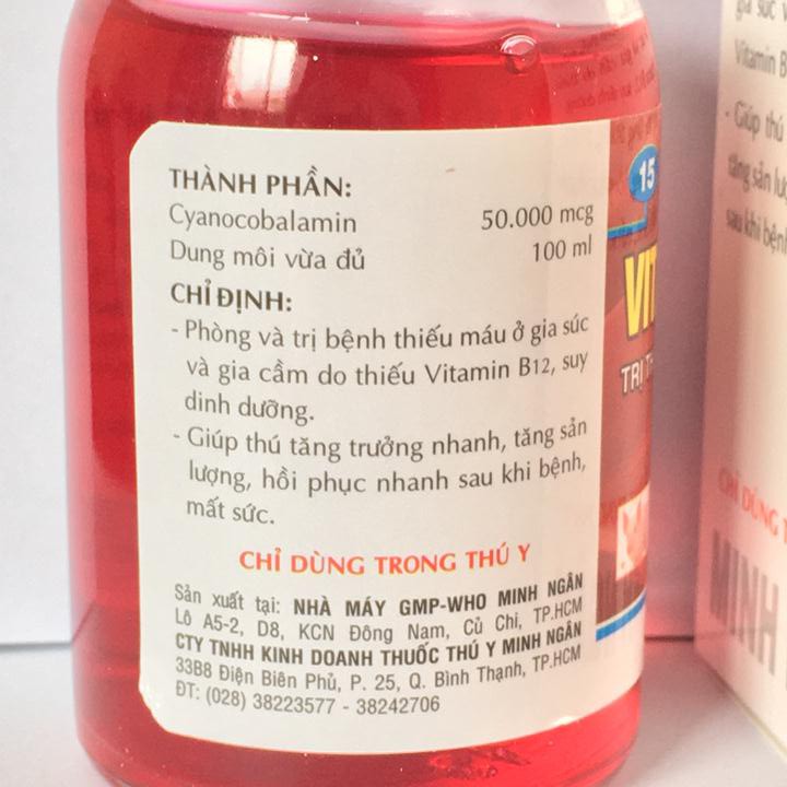 Vitamin B12 trị bệnh thiếu máu cho động vật, giải độc cho cây chai 100ml