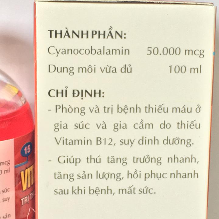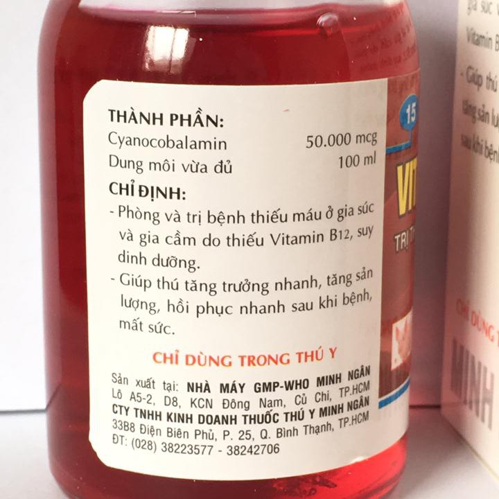 Giới thiệu Vitamin B12 trị bệnh thiếu máu cho động vật, giải độc cho cây chai 100ml
