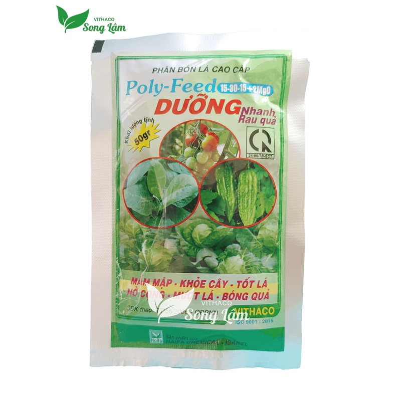 Giới thiệu [VITHACO] Phân bón lá bổ sung NPK kích sinh trưởng cho rau củ quả, hoa kiểng Poly Feed [gói 50gr]