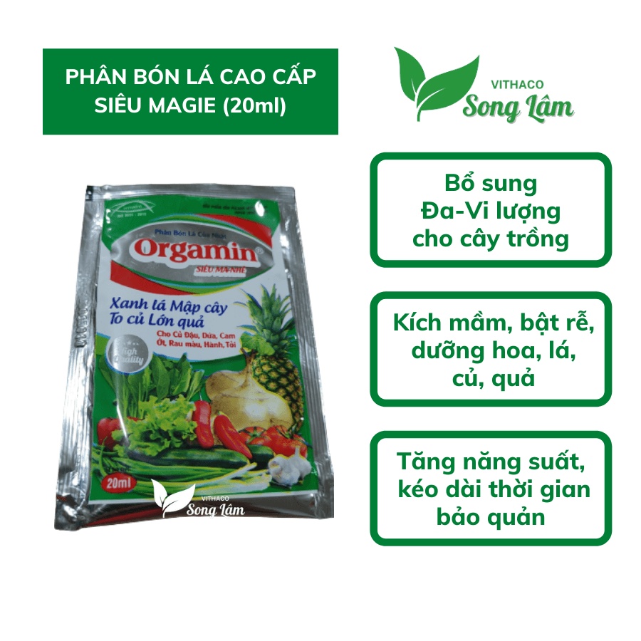 Nhà cửa & Đời sống > Làm vườn > Phân bón || [VITHACO] Phân bón lá hữu cơ Nhật Bản Orgamin kích thích sinh trưởng cho hoa cảnh, rau màu, cây ăn trái [gói 20ml]Còn hàng