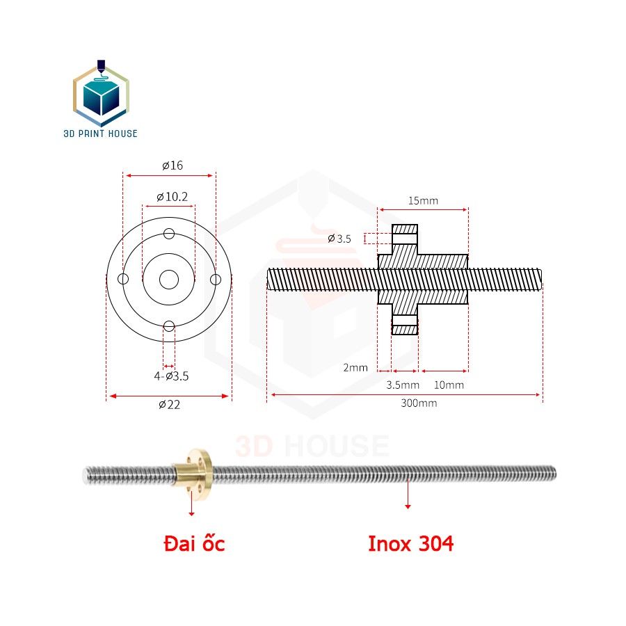 - Đường kính: T8 - 8mm