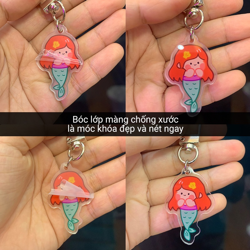 - Bề mặt móc khoá Space Man có 1 lớp màng chống xước, khách hàng về bóc lớp màng đó ra giúp Chin là móc sẽ đẹp và nét hơn nhé.