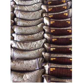 - Chất liệu: áo gối làm bằng vải lụa mát, phía trên có đính các hạt gỗ trúc.