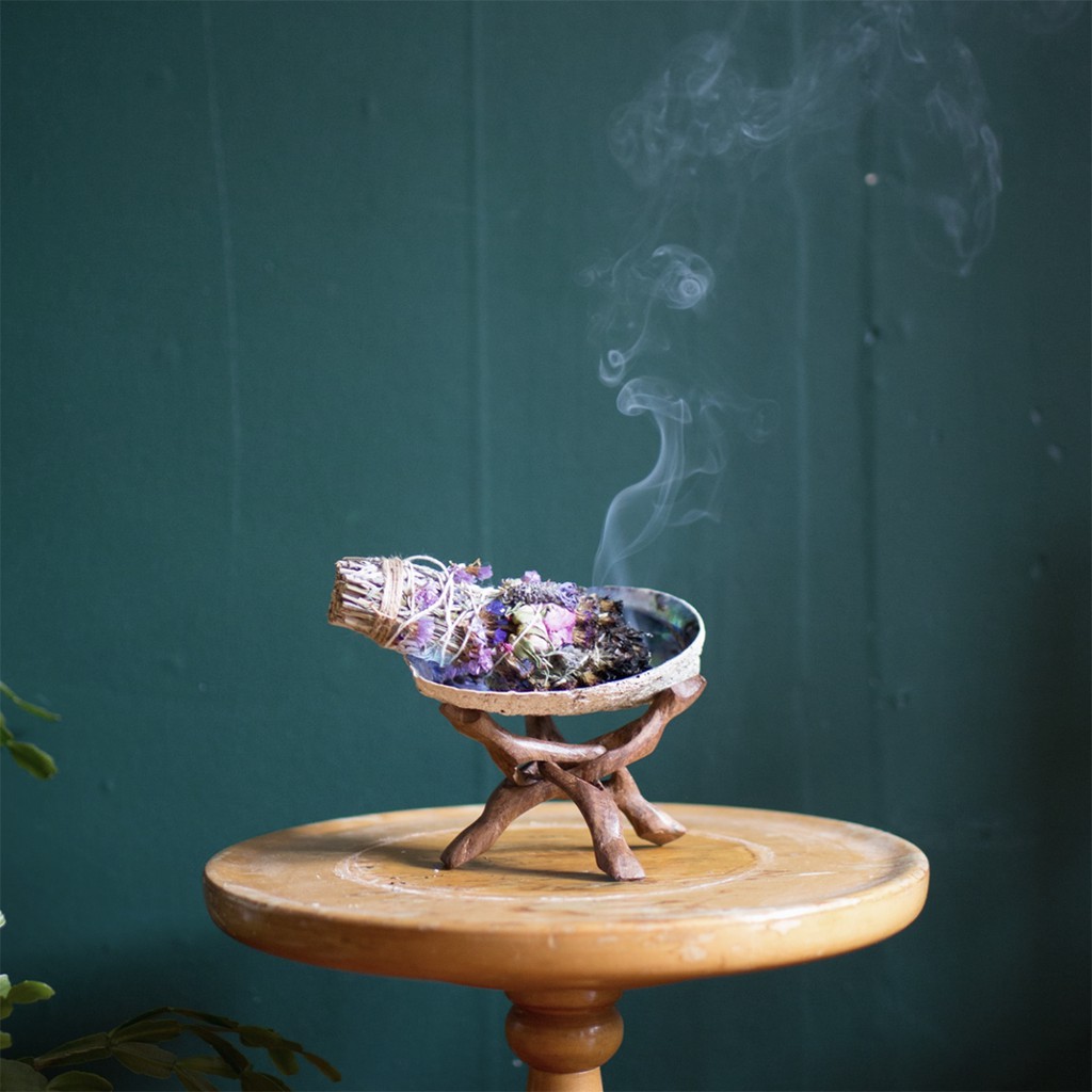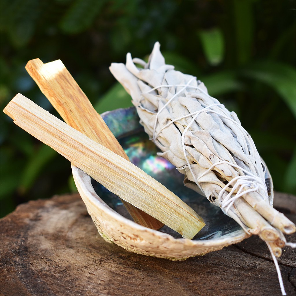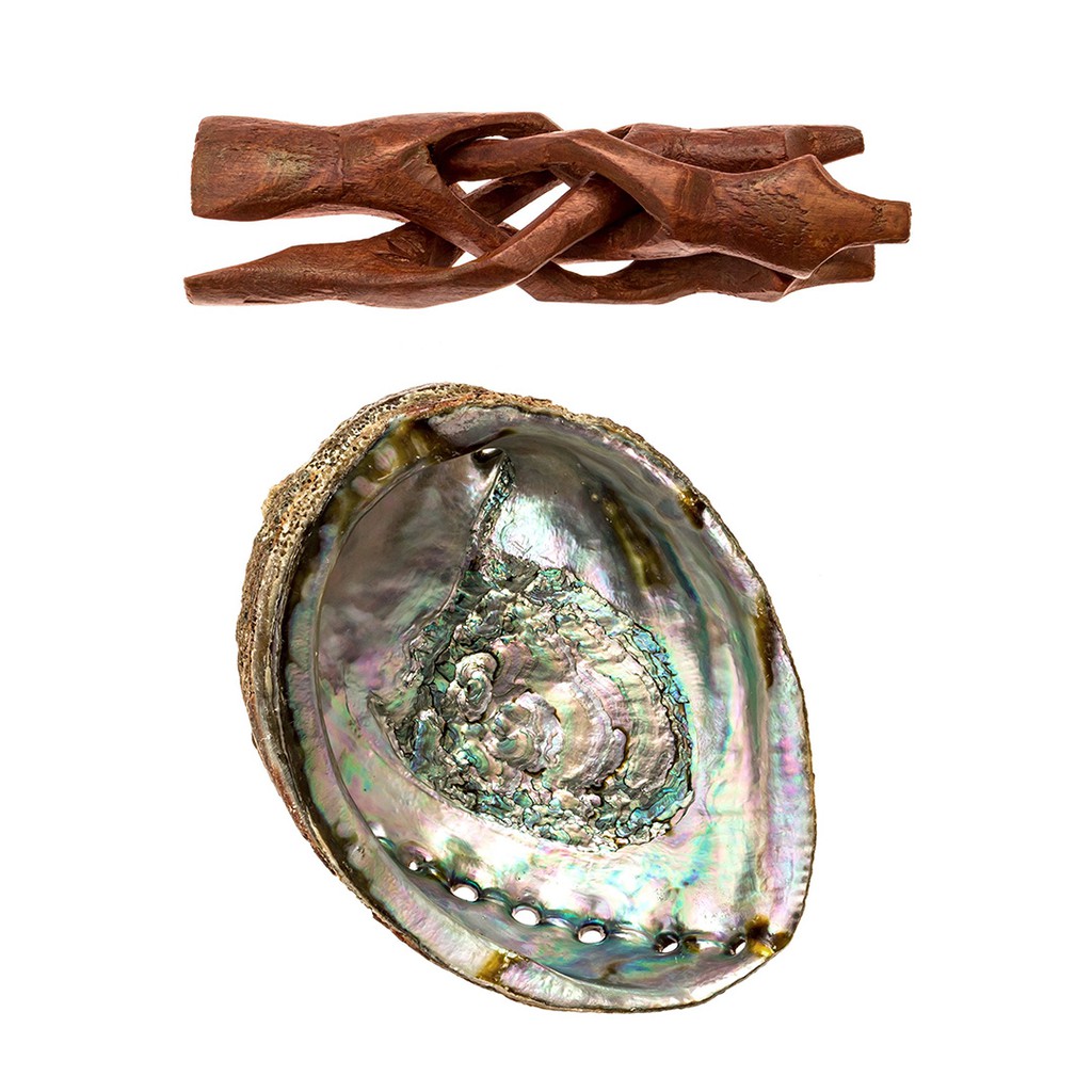 Thanh tẩy bằng khói (smudging) đã được ứng dụng từ rất lâu trong rất nhiều nền văn hóa và tôn giáo. Để thực hiện nghi thức thanh tẩy khói, người ta thường dùng những loại thảo dược hay thực vật có mùi thơm và được tin là có tác dụng tích cực trong việc tẩy uế và đẩy lùi các luồng năng lượng tiêu cực, hoặc đơn thuần là mang lại một tâm lý mới mẻ như được "gột rửa" khỏi cái cũ, ví dụ như trầm hương, xô thơm, gỗ thơm... Thông thường, các loại thảo dược này được đốt ở dạng khô để lấy khói. Vật dụng dùng để đốt vì thế cũng đóng một vai trò quan trọng trong nghi thức thanh tẩy bằng khói. Vỏ bào ngư (abalone) đã được sử dụng rất phổ biến trong nghi thức này với vai trò là vật đựng thảo dược thanh tẩy.Vỏ bào ngư đốt xô thơm thanh tẩy (kèm đế gỗ) là set combo sản phẩm hoàn hảo dành cho nghi thức thanh tẩy bằng khói, thích hợp để đốt xô thơm, tuyết tùng, gỗ trắc xanh palo santo. Vỏ bào ngư có kích thước 15 - 16 cm, ánh xanh trắng hoặc tím. Đế gỗ ba chân có thể xếp lại.