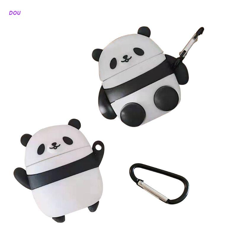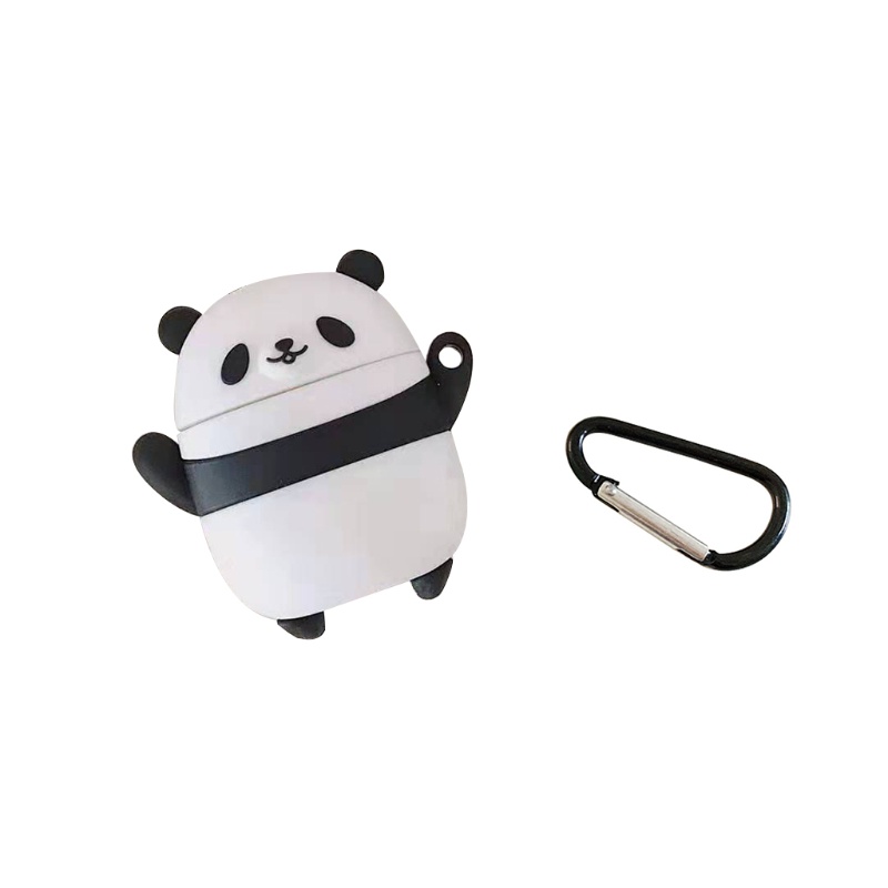 Small Cute Panda Pattern Soft Silicone Protective Case Shockproof Cover Skin Protector with Carabiner for Airpods 1/2 Charging Box AccessoriesDescription: