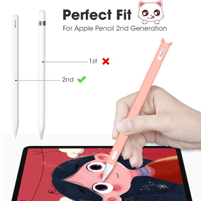 Giới thiệu Vỏ Bảo Vệ Silicon Chống Lăn Hình Tai Mèo Dễ Thương Cho Bút Cảm Ứng Apple Pencil 2 Ipad Pro 2nd