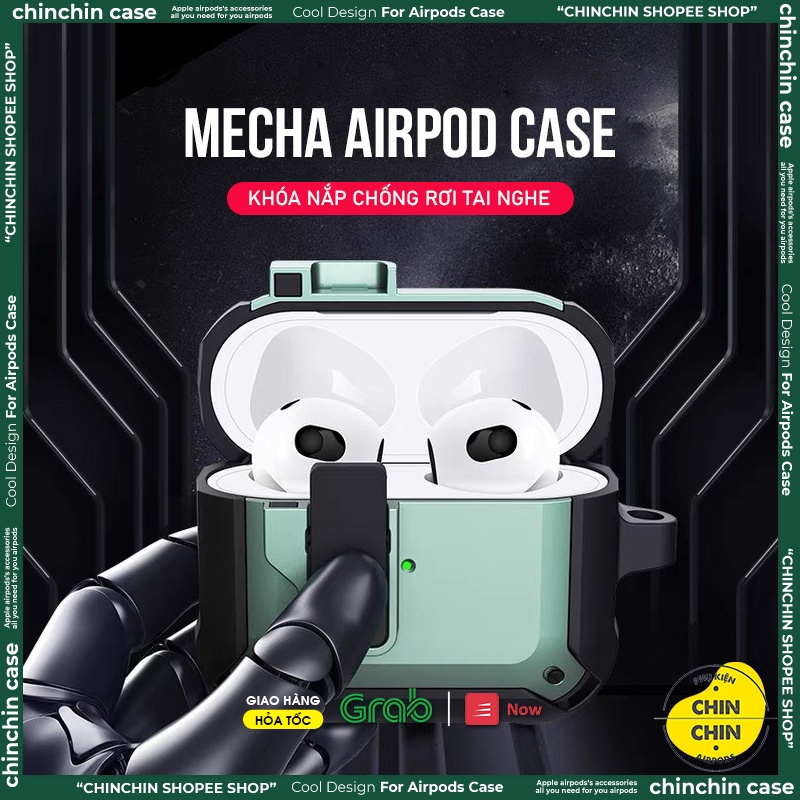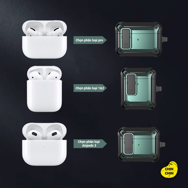 Giới thiệu Vỏ Bảo Vệ Tai Nghe Airpod 1 2 3 Pro Mecha Có Khóa Chống Rơi Nắp Chất Liệu Nhựa TPU PC 2 Lớp Cao Cấp - Chinchin Case