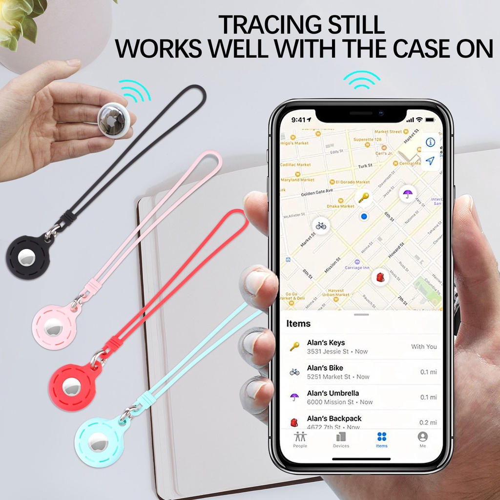 Vỏ bọc airtag có móc khóa bằng silicon có thể treo điện thoại nhiều màu sắc tiện dụng khi theo dõi vị trí của cún cưng