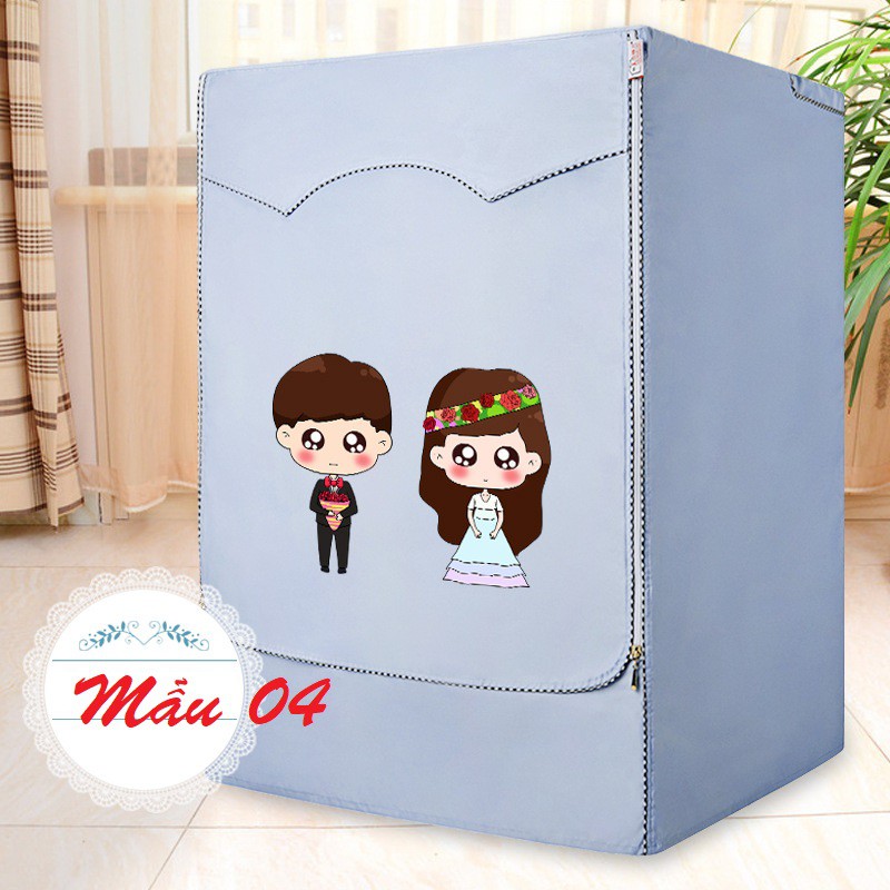 Vỏ bọc, áo trùm phủ máy giặt lồng ngang vải bạt siêu bền có in hình chống nước