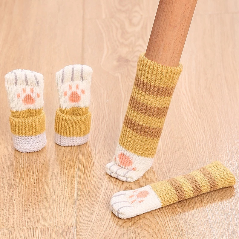 (4 CHIẾC) Vỏ Bọc Chân Bàn Ghế Gỗ Hình Móng Mèo Bằng Len Dễ Thương Chống Trượt Chống Mài Mòn