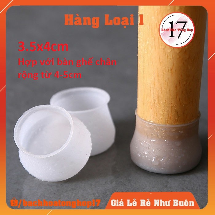 - Kích thước: 4 * 3.5CM. Miệng trên rộng 3.5cm, có thể co giãn, đế rộng 4cm. Phù hợp với bàn ghế chân rông từ 4-5cm