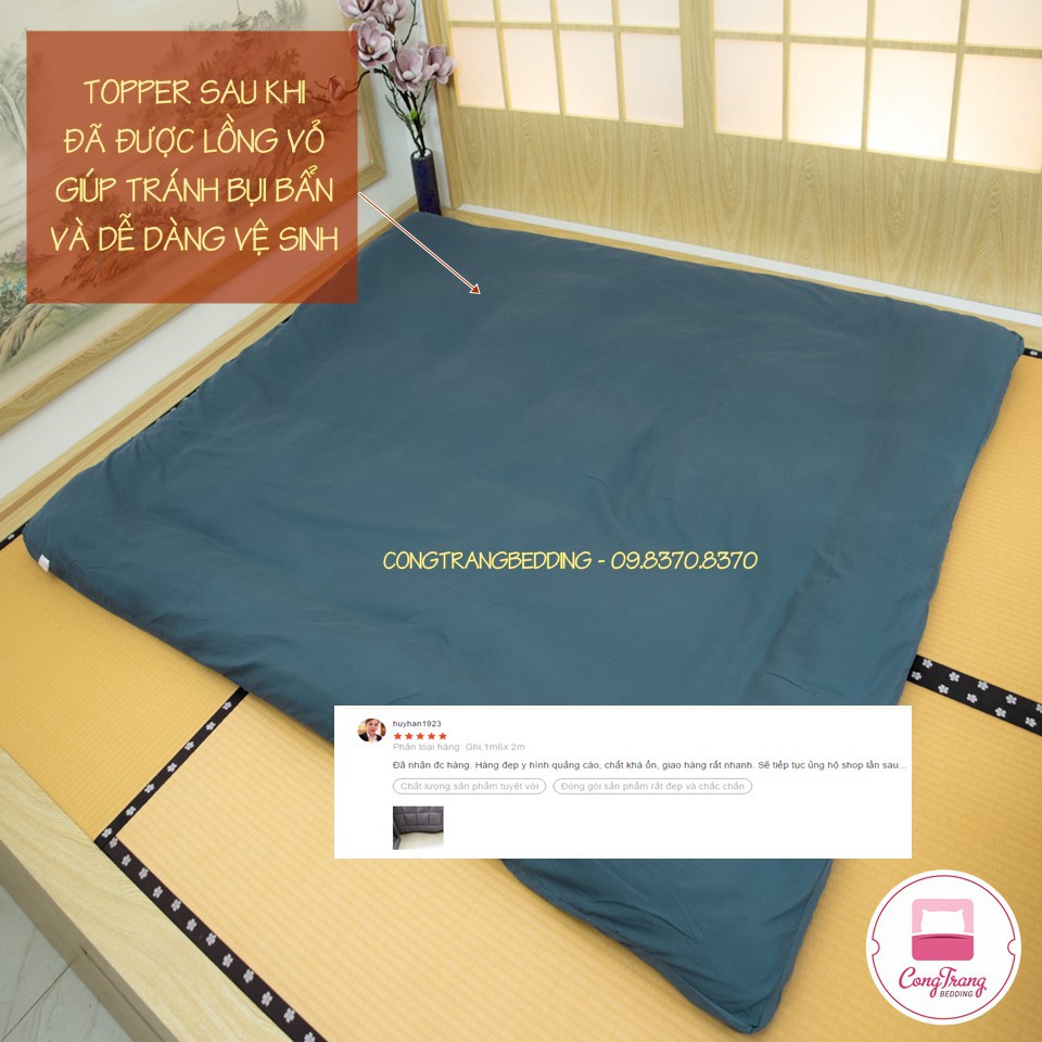 - Kích Thước theo sizze topper, tác dụng chống bám bụi vào bên trong topper, dễ vệ sinh và dễ sử dung.