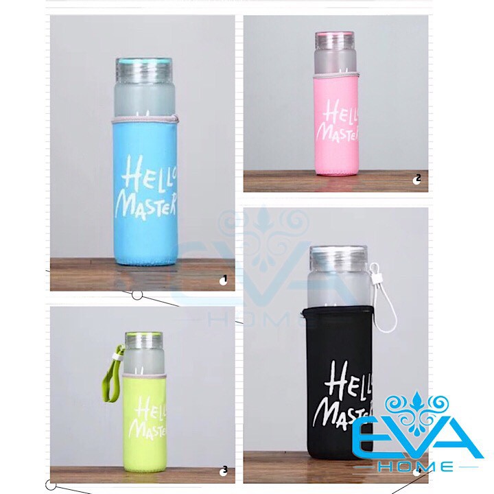 Giới thiệu Vỏ Bọc Vải Neoprene In Chữ Hello Master Cho Bình Đựng Nước 480 Ml
