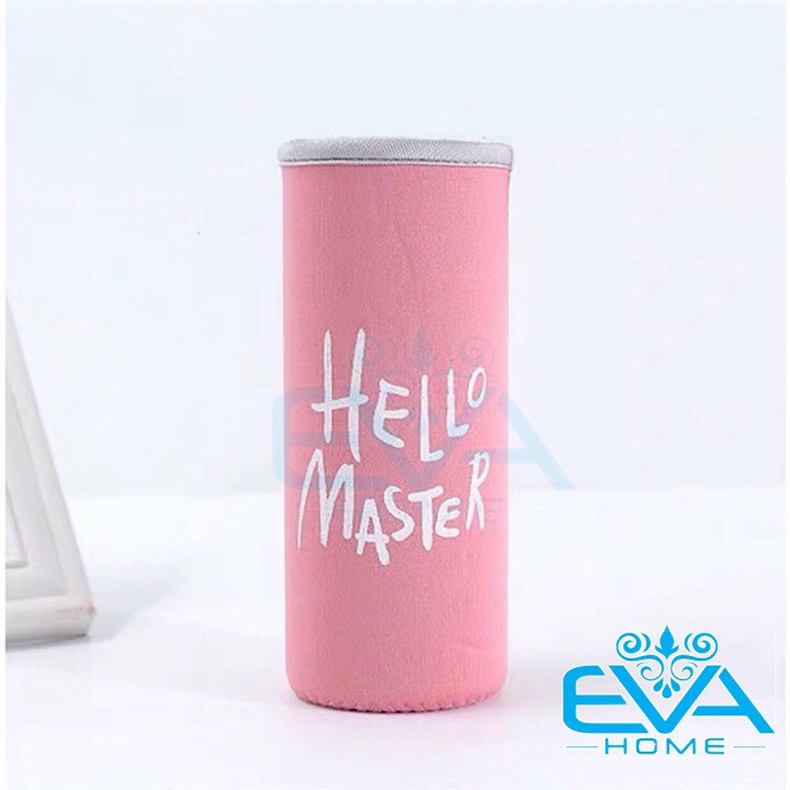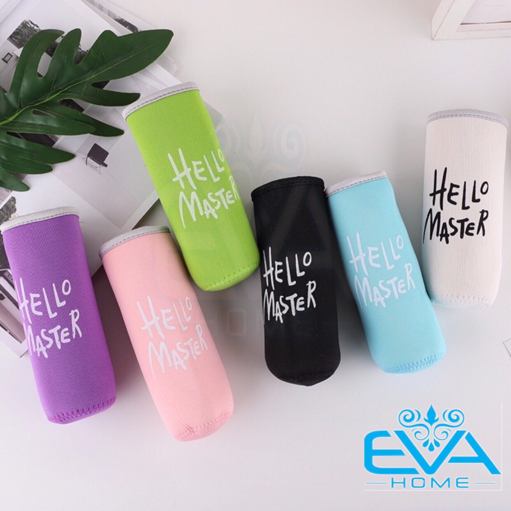 Vỏ Bọc Vải Neoprene In Chữ Hello Master Cho Bình Đựng Nước 480 Ml