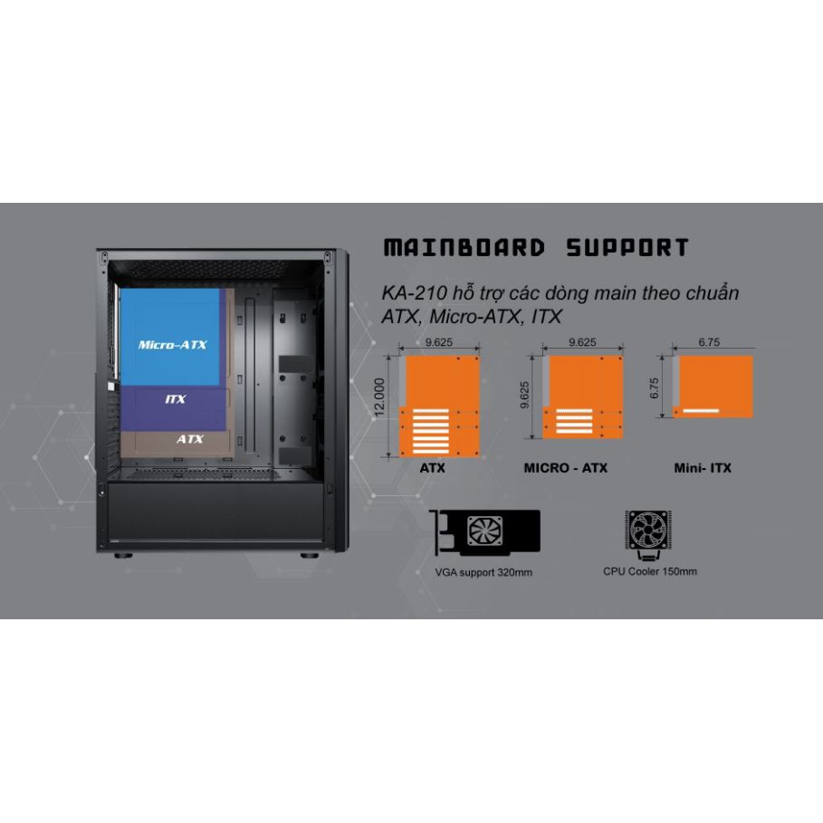 - Kích thước Case 370 x 190 x 435mm