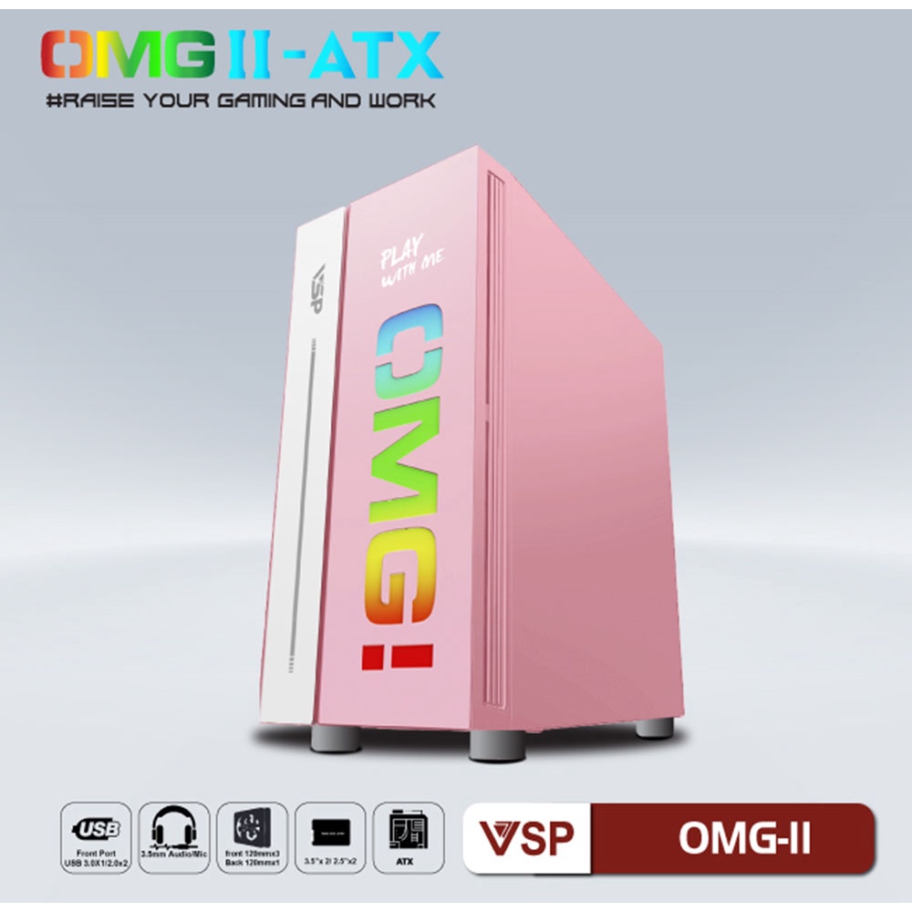 Máy tính & Laptop > Linh Kiện Máy Tính > Case Máy Tính || Vỏ Case Gaming VSP OMG-II ATX - Đen - Hồng - Xanh ngọc Bích (Sẵn LED mặt trước)Còn hàng