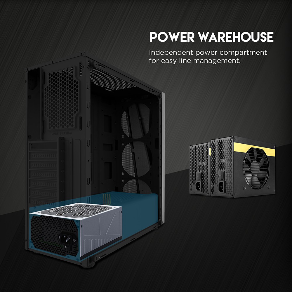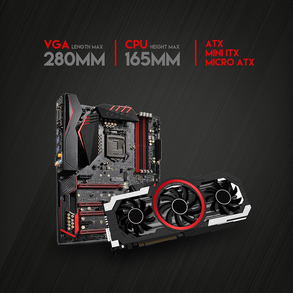 Khả năng tương thích quạt: quạt trước 3x120mm, quạt sau 1x120mm, quạt đáy 2x120mm, quạt trên 2x120mm