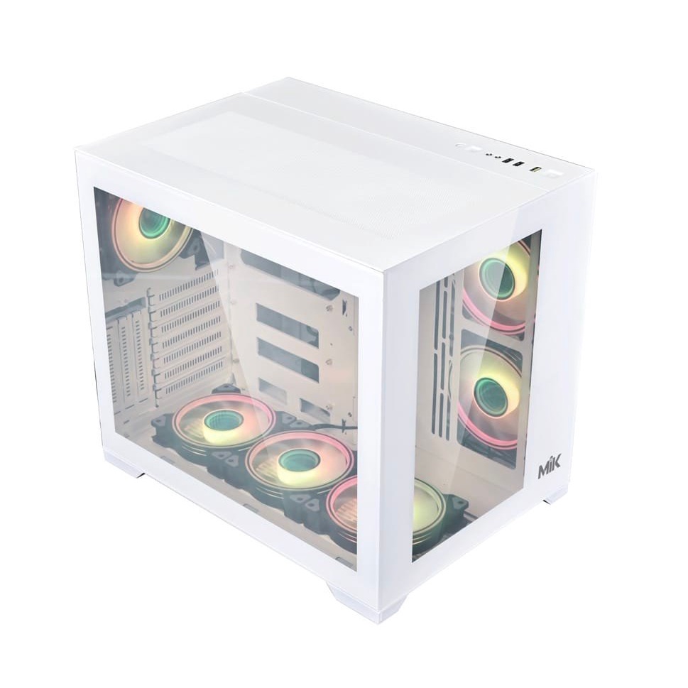 Vỏ case máy tính mik lv12 thiết kế gaming, 2 mặt kính trong suốt, khung màu trắngĐặc điểm nổi bật: