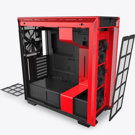VỎ CASE MÁY TÍNH NZXT H710 MÀU ĐEN ĐỎ- Hỗ trợ quạt: Mặt trước: 3x 120/ 2x 140mm/ Mặt trên: 3x 120/2x 140mm/ Mặt sau: 1x 120/1x 140mm