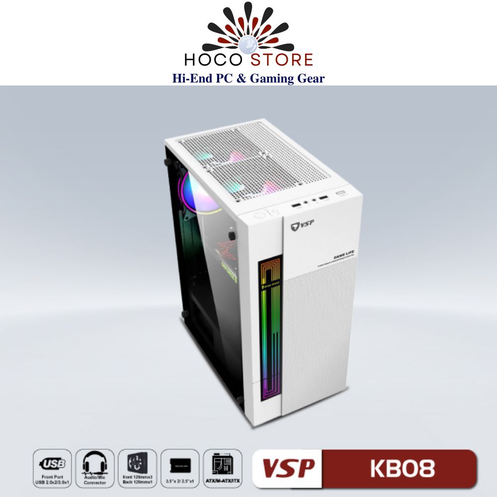 Vỏ Case máy tính VSP - Esport Gaming KB08 - Mặt Trước LED RGB, Nắp Hông Kính Cường Lực - Hàng Chính Hãng
