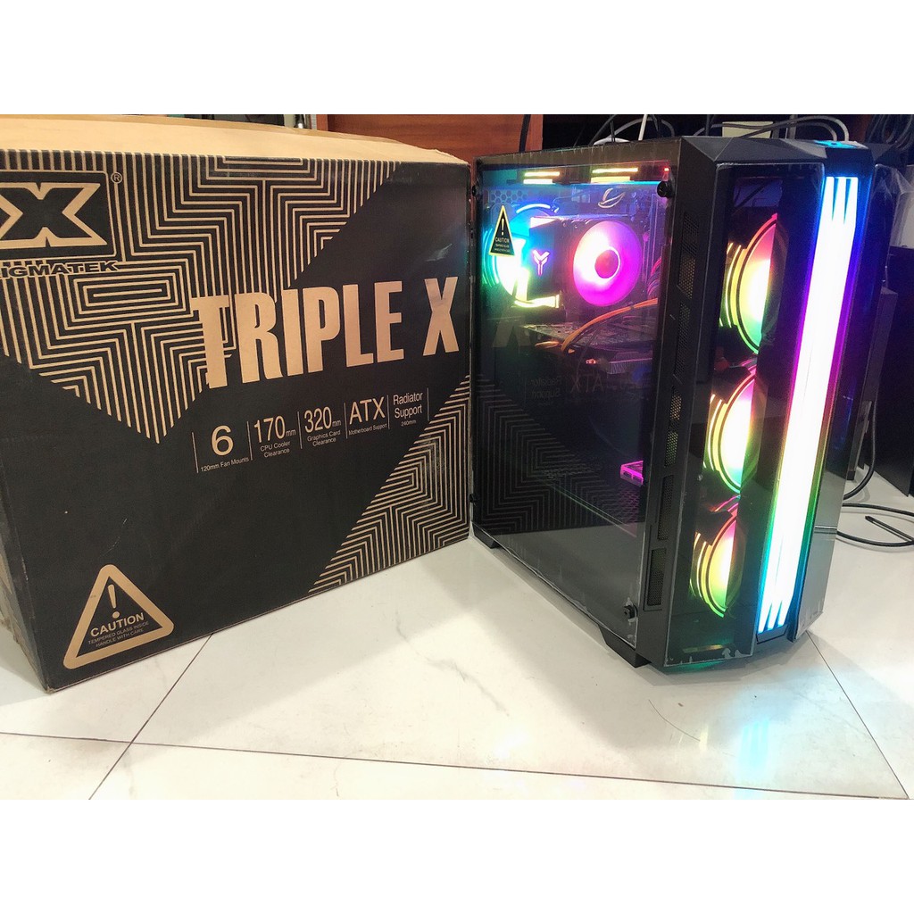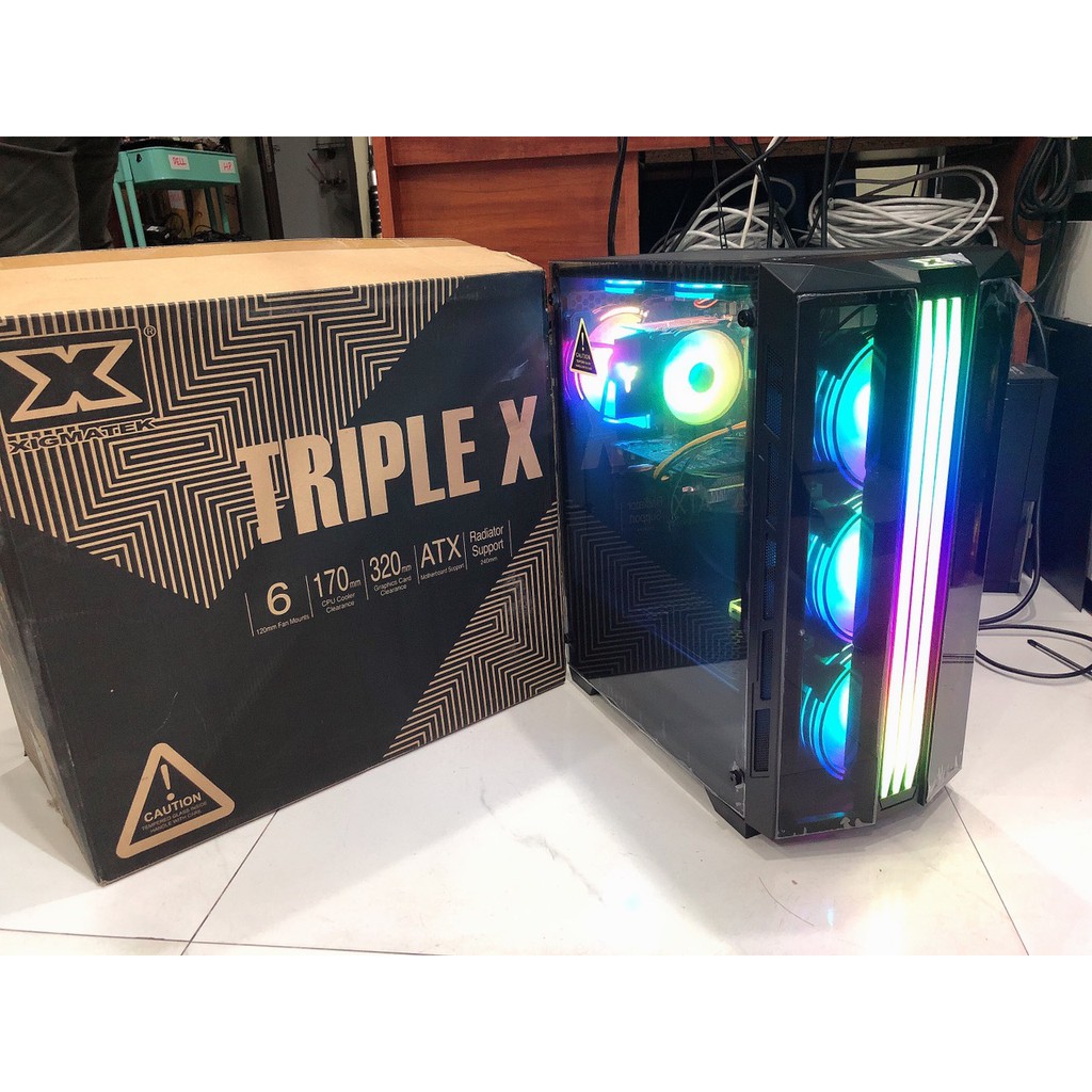 Máy tính & Laptop > Linh Kiện Máy Tính > Case Máy Tính || Vỏ Case máy tính XIGMATEK TRIPLE X (EN44245) mặt kính cường lực (No Fan) - PREMIUM ATX, RGB STRIP sẵn dải led mặt trướcCòn hàng