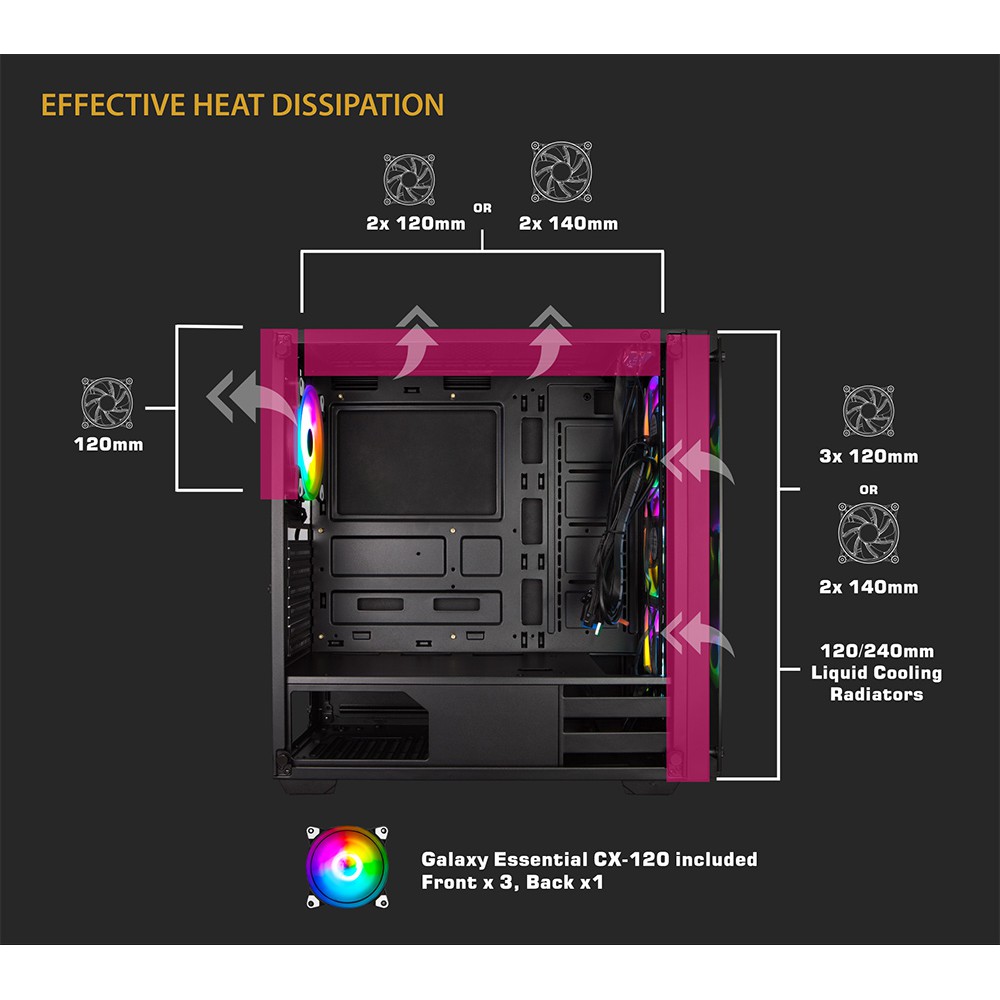 - Nóc: 120/ 140mm fan x 2 (tùy chọn)