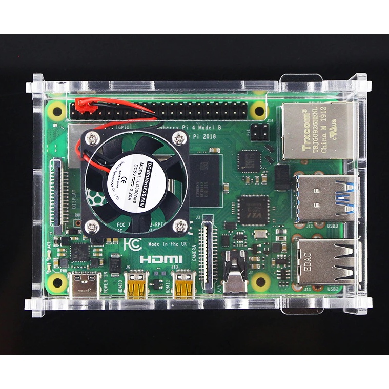 Vỏ Case Mica Cho Raspberry Pi 4 Kèm Quạt Tản Nhiệt