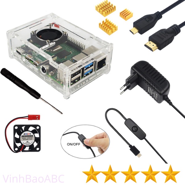 Máy tính & Laptop > Linh Kiện Máy Tính > Quạt và Tản Nhiệt || Vỏ Case Mica Cho Raspberry Pi 4 Kèm Quạt Tản NhiệtCòn hàng