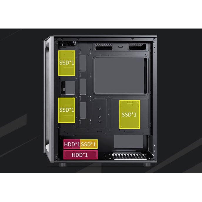 -Ổ đĩa dưới cùng: Ổ cứng 3.5 3.5 * * 2 hoặc SSD 2.5 * * 1 + 3.5 HDD HDD * 1; Nội bộ: Ổ SSD 2.5 * * 3