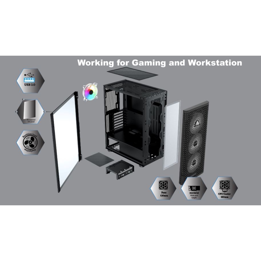 - Water Cooling support:Front 360mm/Top 240mm (Chưa Fan)