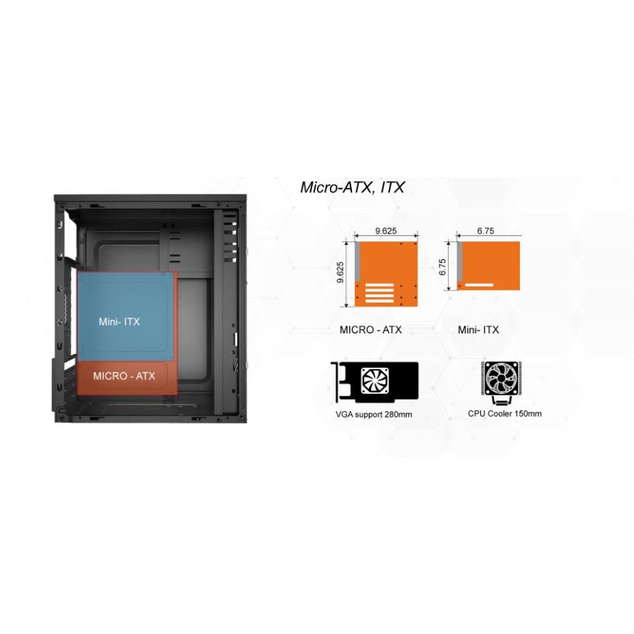 - Mainboard support M-ATX/I-ATX