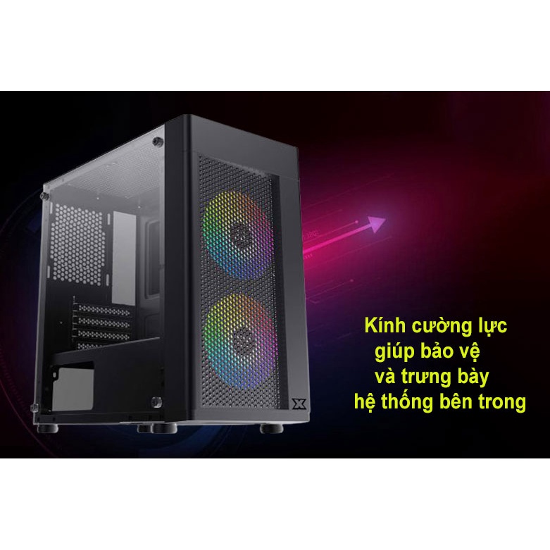-xigmatek gaming X 3FX vỏ hông mặt kính cường lực trước có tản lưới kèm 3 fan led chỉnh đc nhiều chế độ led
