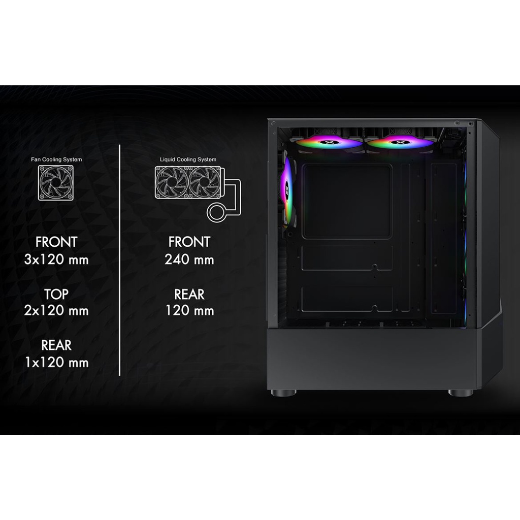 + Trước: 120mm x 3 (lắp sẵn 1 RBG)