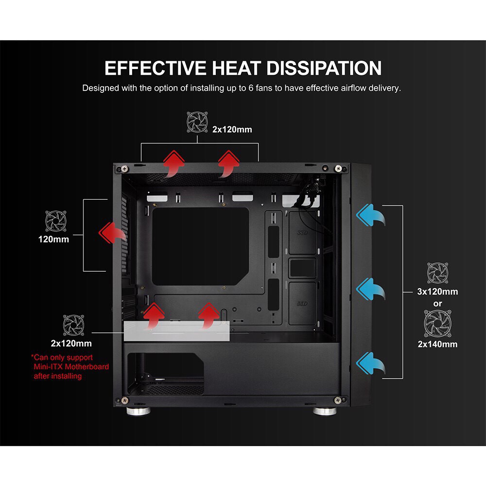 - Phía trên: 2 x 120mm fan (Chưa kèm Theo)
