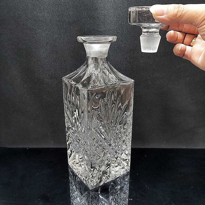 Vỏ Chai Đựng Rượu Đẹp 700ML Pha Lê cao cấp mẫu Vuông Cao hoa văn lá nổi – Nắp mài nguyên khối không gioăng (Mẫu P4)