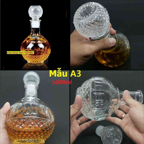 Giới thiệu Vỏ chai đựng rượu thủy tinh 1000ml cao cấp mẫu TRÒN BẦU hoa văn Chấm Bi – Mẫu A3
